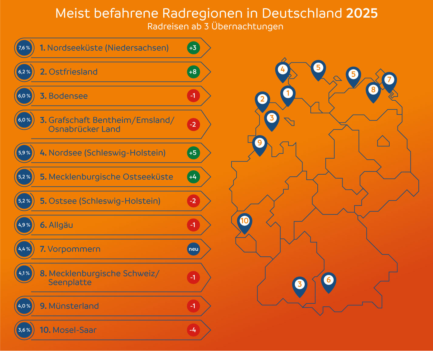 Hinweis an die Redaktionen: Bilder und Grafiken finden Sie im Downloadbereich. Das Handout mit den Ergebnissen der ADFC-Radreiseanalyse 2025 finden Sie in der blauen Medienbox.